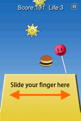 To move the bottom of the stick, slide your finger on the screen to left and right. You should balance the stick, and lead his head to his favorite hamburgers!