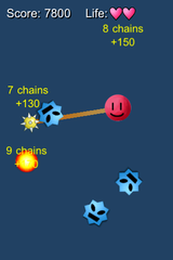 Mr.Papi (red ball guy) fights with many enemies. His weapon is a spiky ball with a rubber rope!